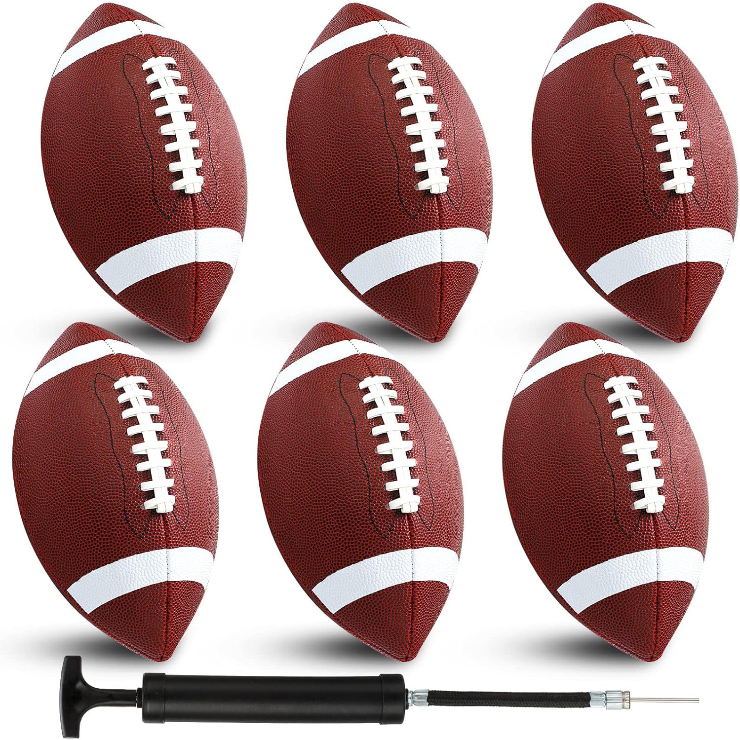 Package Include: you will get 6 pieces of composite leather footballs (size 9) with 1 set of air pump, including 1 pump, 1 needle and 1 flexible joint extension, a complete set of tools making it easy to inflate and use these footballs; The inflatable official size football is the ideal size to fit in a young player’s or a kid’s hands, so you can catch and throw easily; With enough quality, you can use these footballs as gifts for Christmas child